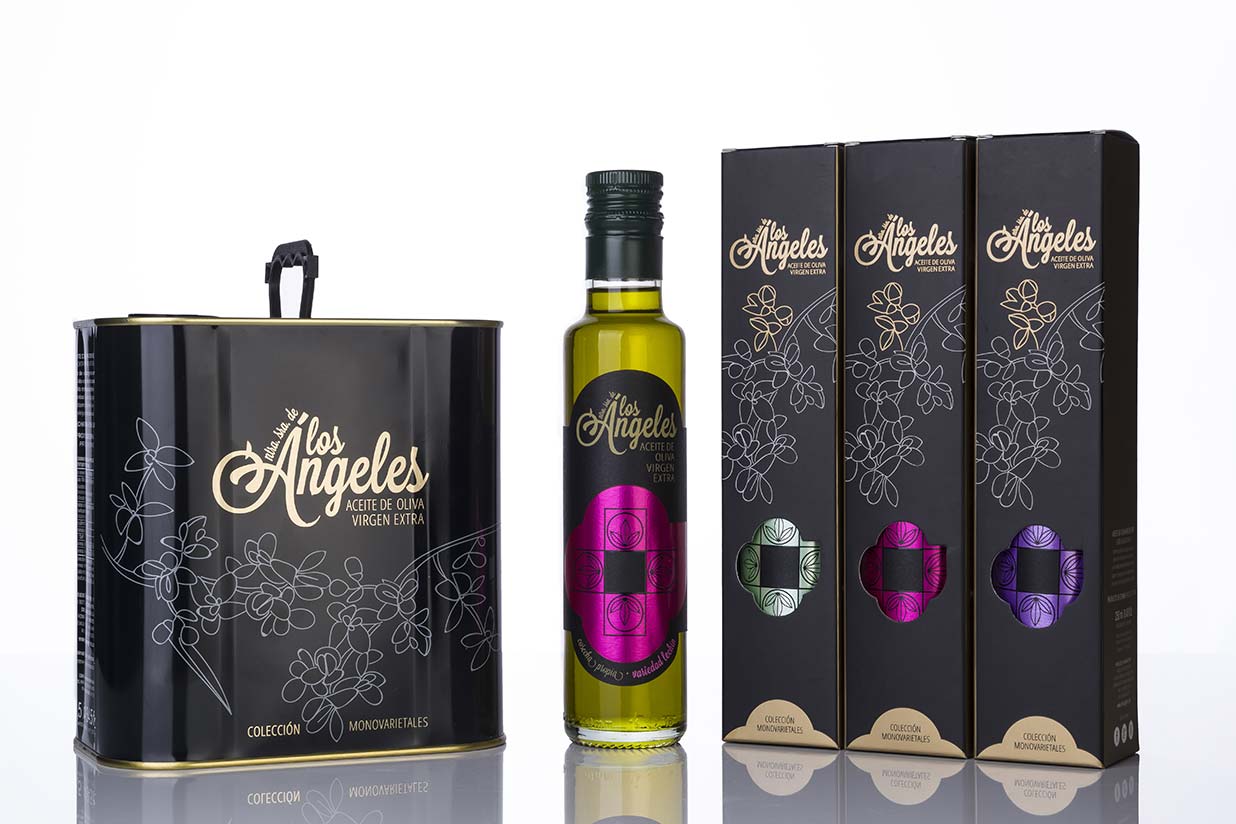 El Aceite de Oliva Virgen Extra Los Angeles es un zumo de aceitunas de la variedad lechín y manzanilla procedentes de la Sierra Sur de Sevilla y la Sierra de Cádiz. Es un caldo de color verde intenso, con matices dorados que destaca por su sabor afrutado, ligero amargor y olor fragante genuino.